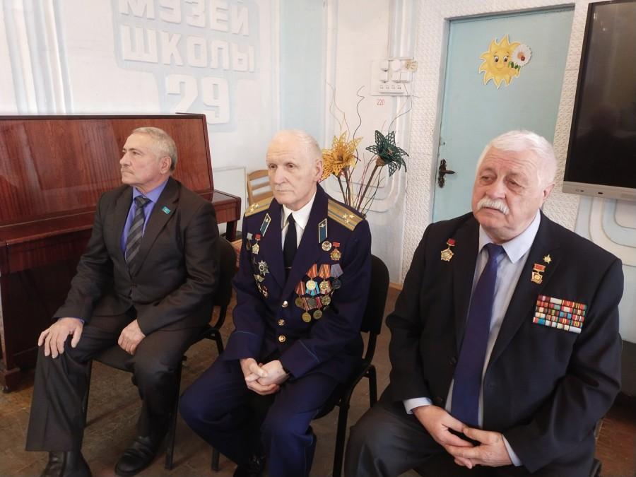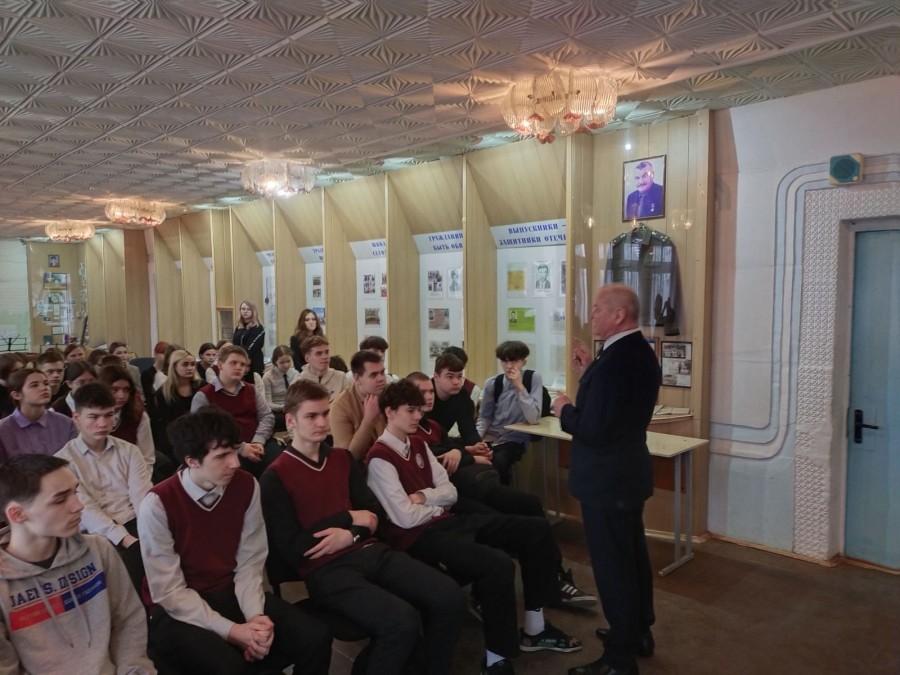 Состоялась встреча учащихся нашей школы с ветеранами войны в Афганистане. Полковник Мацкевич Валерьян Альбинович, полковник Филенко Владимир Александрович, подполковник Ананченко Валерий Геннадьевич, подполковник Хорошенький Тимофей Васильевич рассказали о своем боевом пути, о том, как защищать Родину и ответили на все интересующие ребят вопросы.