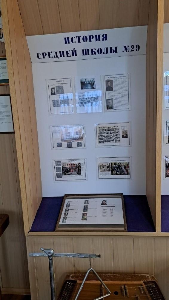 Экспозиция посвящена ученику СШ№29 с1961-по 1971-Пименову В. В., имя которого было присвоено школе в 2007 году. Среди экспонатов музея личные вещи и документы Героя Советского Союза Пименова Василия Васильевича