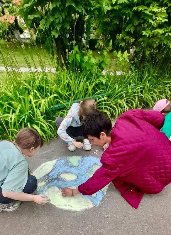 Ребята ловили, редкие этим летом, лучи солнца и превратили серый асфальт в красочное полотно: