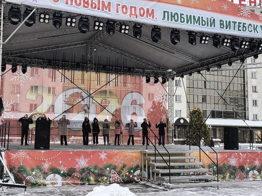 08.01.2026Педагоги, учащиеся и их родители приняли участие в новогоднем концерте на площади Победы, у главной новогодней елки города.
