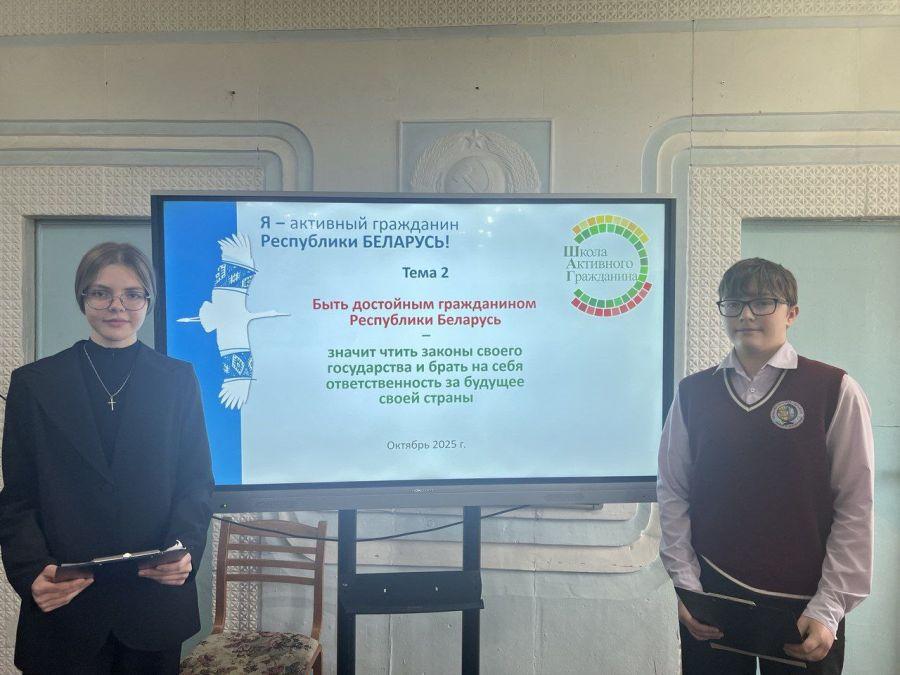 На этот раз для учащихся 9-х классов была организована диалоговая площадка на важную тему: «Быть достойным гражданином Республики Беларусь — значит чтить законы своего государства и брать на себя ответственность за будущую судьбу своей страны».