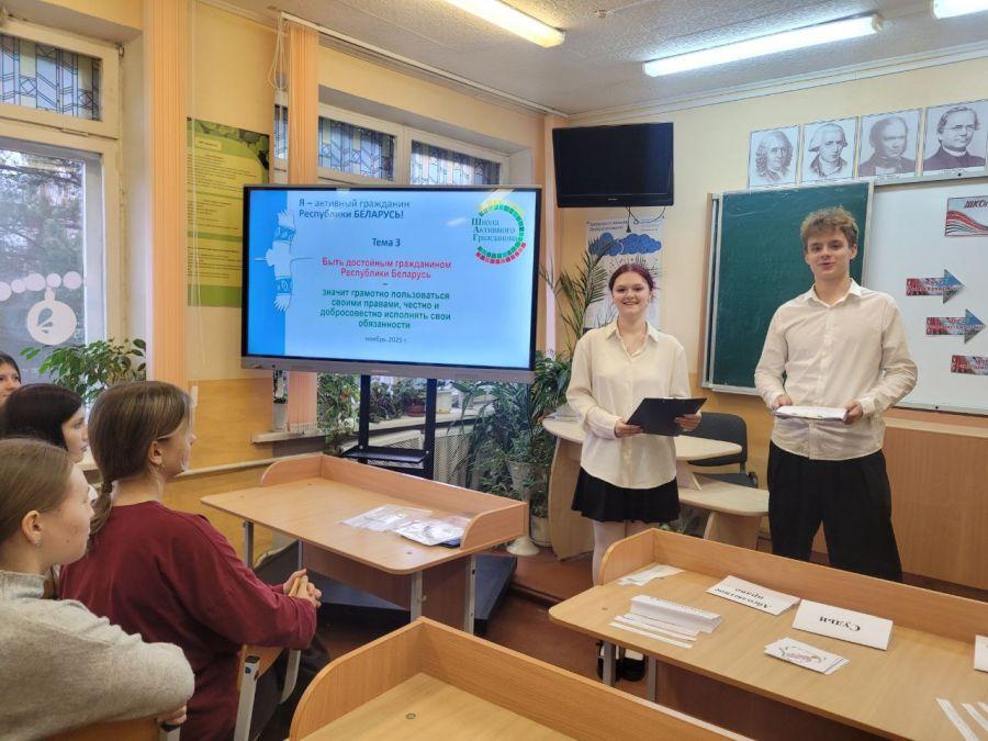 Сегодня во всех учреждениях образования страны прошли мероприятия в рамках информационно-образовательного проекта «Школа Активного Гражданина» для учащихся 8-11 классов.