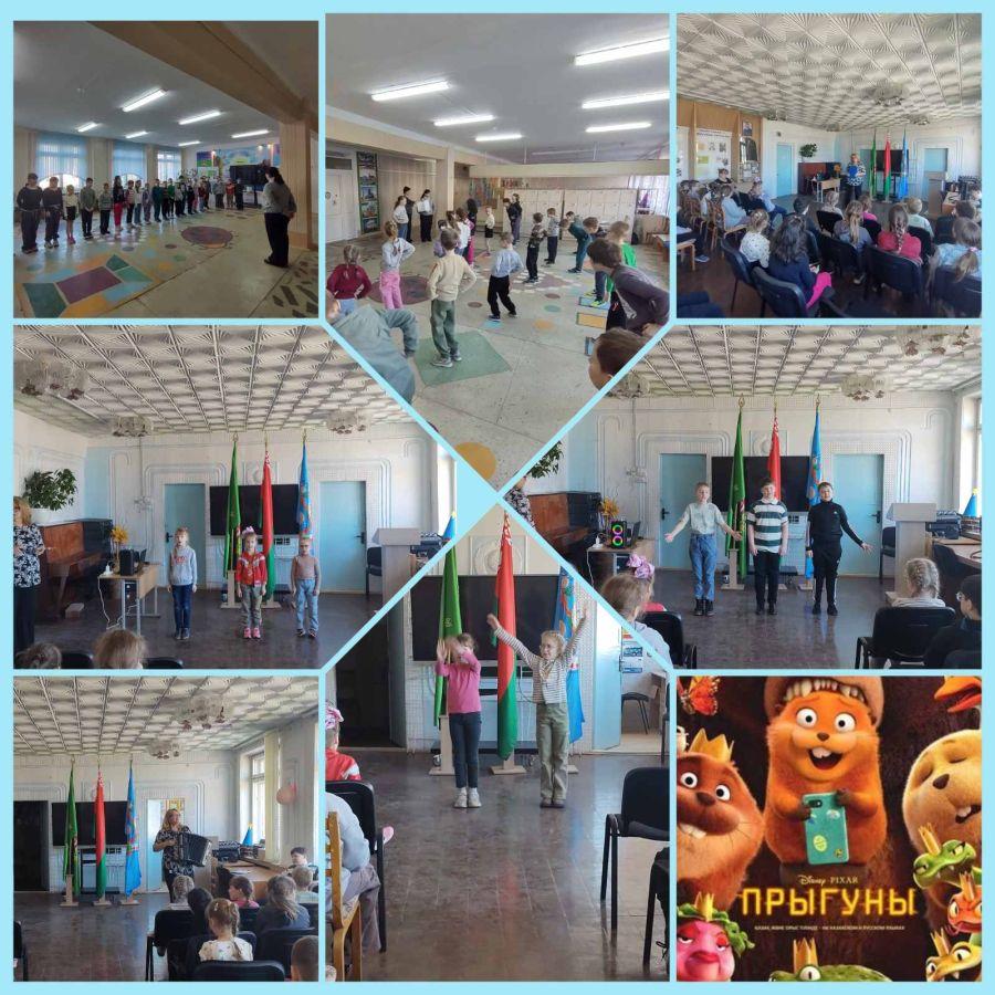 23.03.2026Первый день весеннего школьного лагеря «Радужная планета» начался весело и задорно! Торжественная линейка, бодрая зарядка, просмотр мультфильма «Прыгуны» в кинотеатре «Мир» и праздничный концерт!