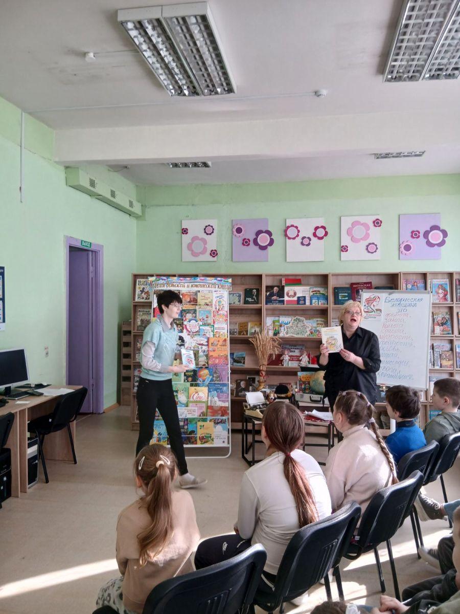 Школьный лагерь, отряд «Капельки» совершили познавательный экскурс в библиотеке им.С.Я.Маршака «Женщины, которыми гордится Беларусь», поиграли в подвижные игры, зарядились бодростью и энергией на весь день.
